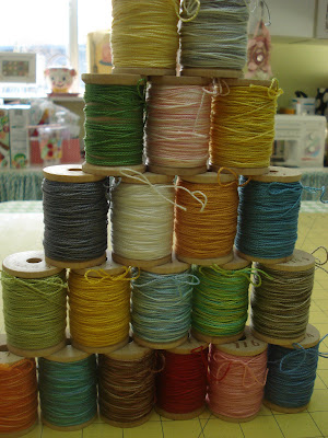 I have a lot of this thread also. Have been using for some felt projects. Love your spool idea. Are they old or new? I have a couple of old wooden spools but not nearly enough.