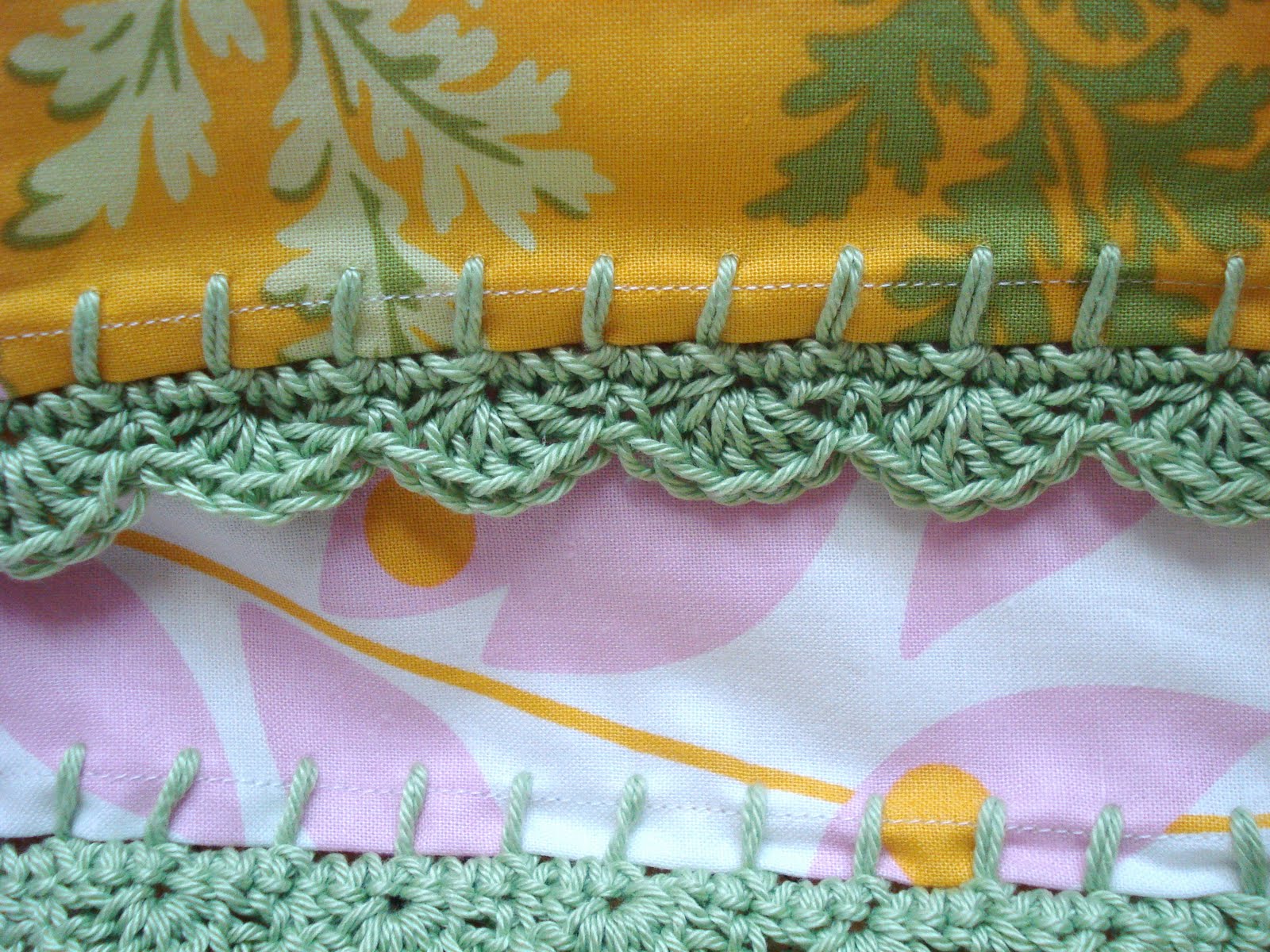Thank you soooo much for posting this! I needed a little push to pick up my crochet hook and yarn (no problem with the fabric portion). Your pillowcases are amazing, so pretty and colourful.