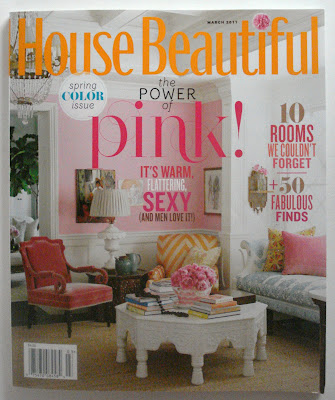 I spied the cover of the March issue of House Beautiful....sub-titled "the Power of Pink!...the whole issue just about beautiful things for your home that are pink.