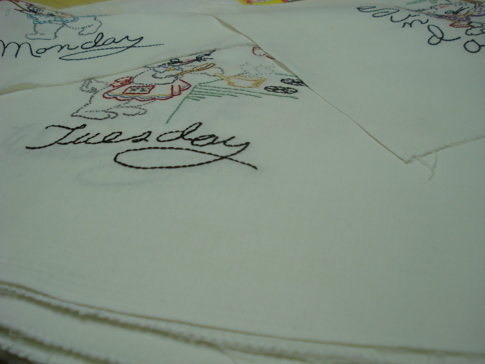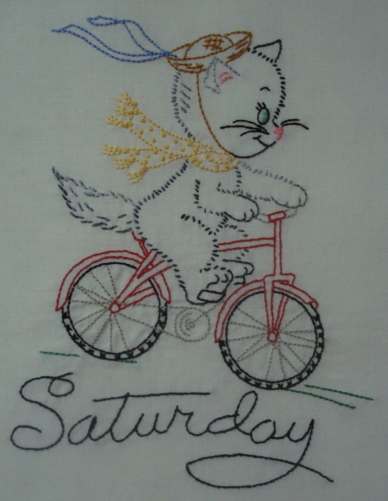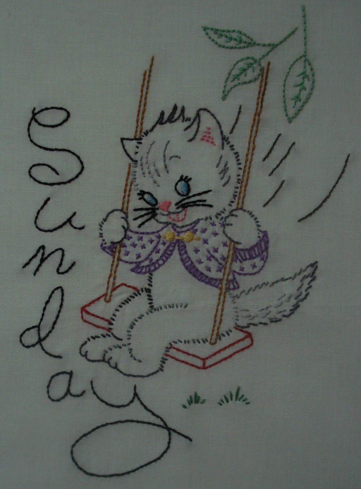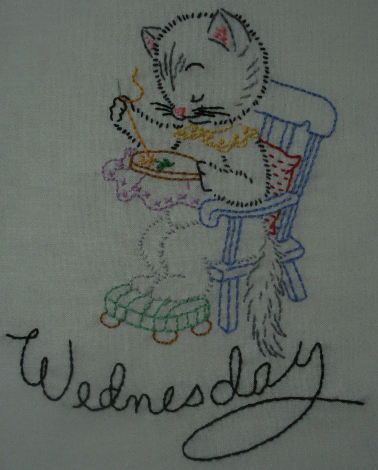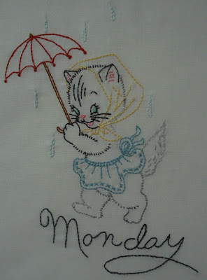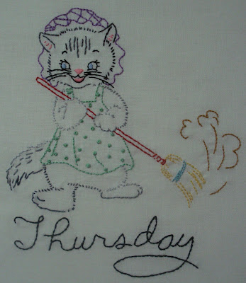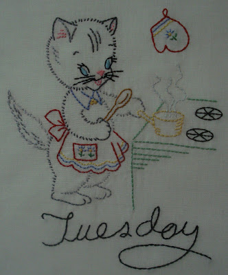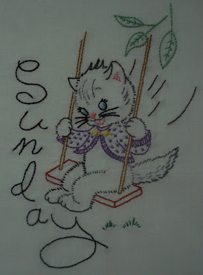 LOVE those little kitties. I used to love to do those little embroidered days of the week. My favorite was little poodles. A few years ago, I found the poodles at Turkey Feathers online store and I'm hoping to do them again someday.