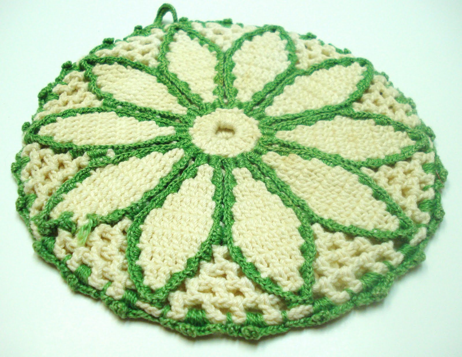 I was lucky enough to be given bunches of these by my grandmother. She told me she and her friends made them by the dozen during WWII while their husbands were deployed. I'm sure these types of potholders and doilies were made in all sorts of situations but everytime I see them I immediately picture a wife of a soldier during WWII channeling her anxiety and nervous energy into her crocheting.