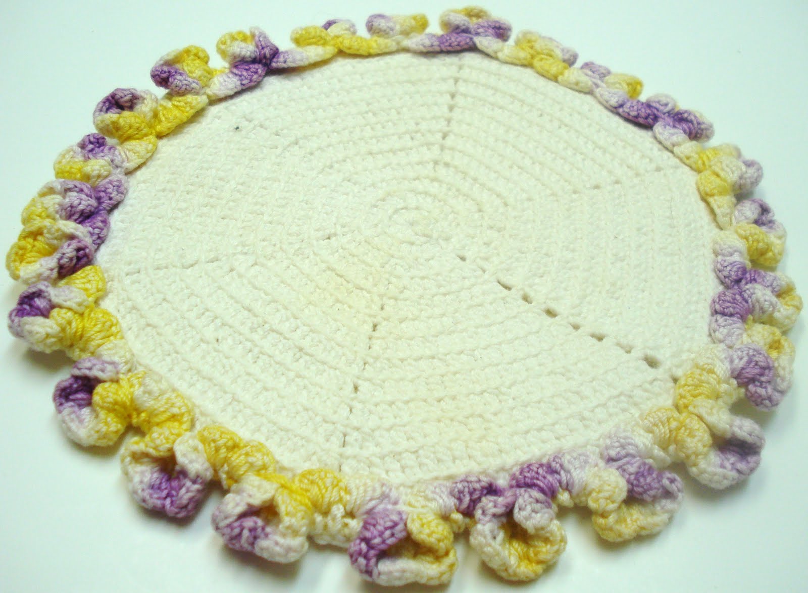 The one with the lavendar and yellow trim looks oddly familiar. I think I had a napkin once upon a time edged in a similar yarn.
