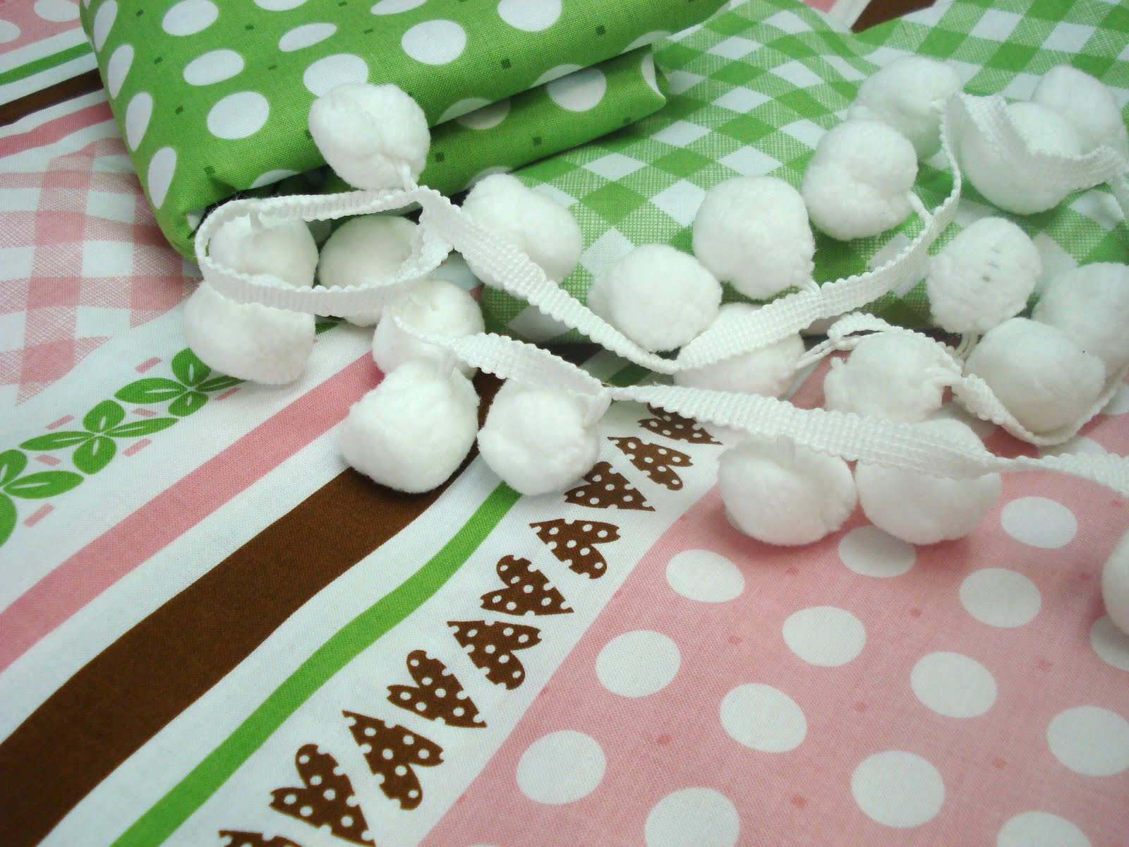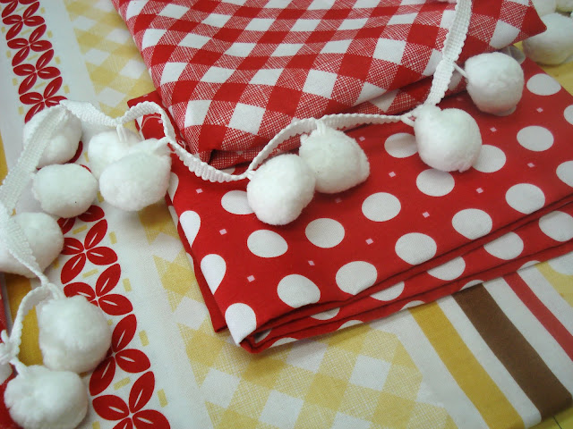 I'm using the pom-pom's for 3 projects using these Sew Cherry Stripes...Sew Cherry Dots and Sew Cherry Ginghams...