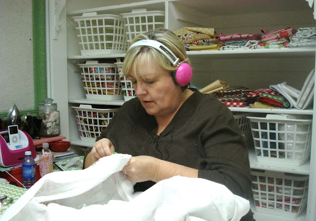 A few weeks ago Kassidy took this picture of me doing some applique.