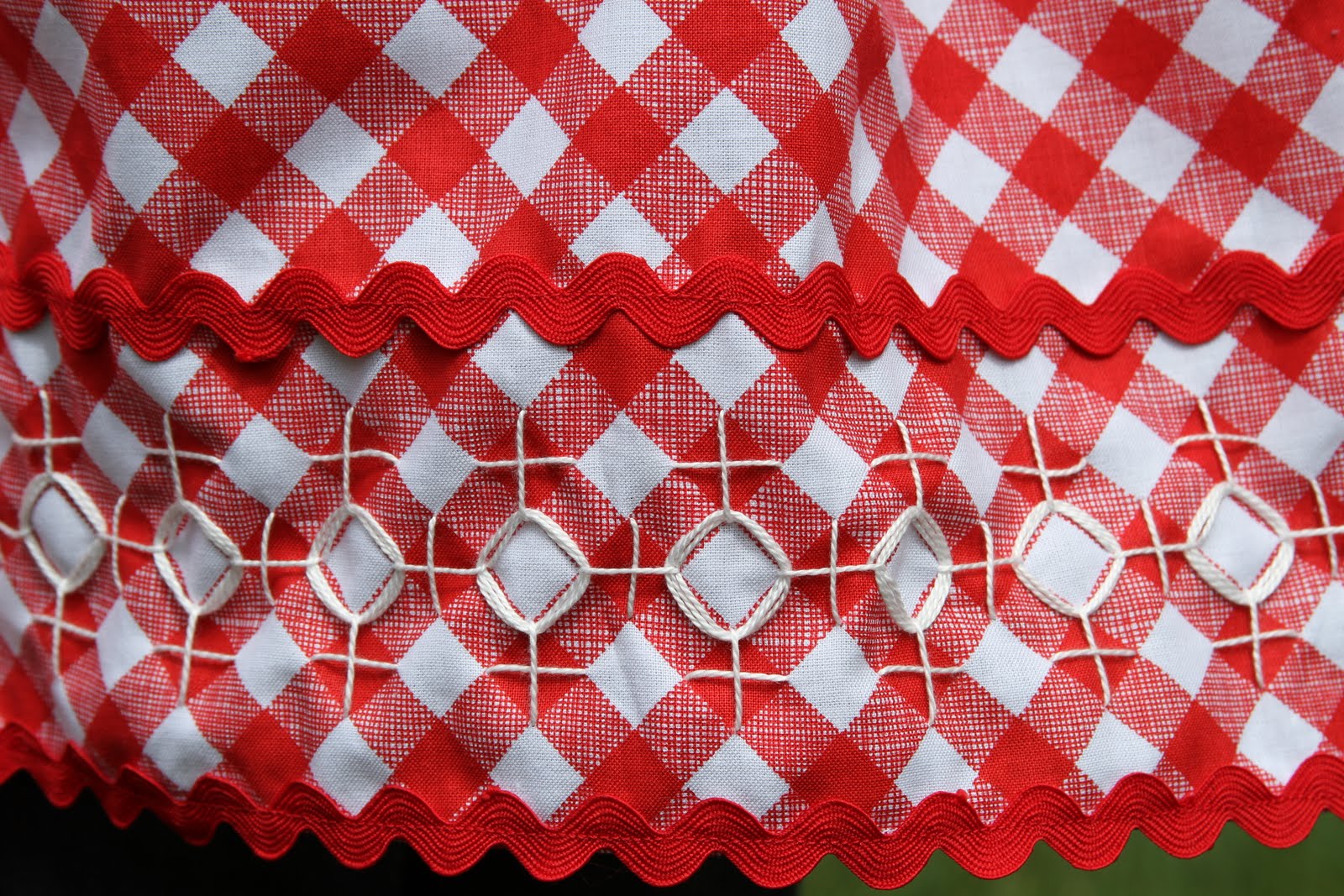 I want more! I adore aprons and your cute as can be fabrics are perfect in this pattern. The trims are very vintage and make these aprons even more special. I'm glad you posted tons of pictures. I enjoyed every one of them.