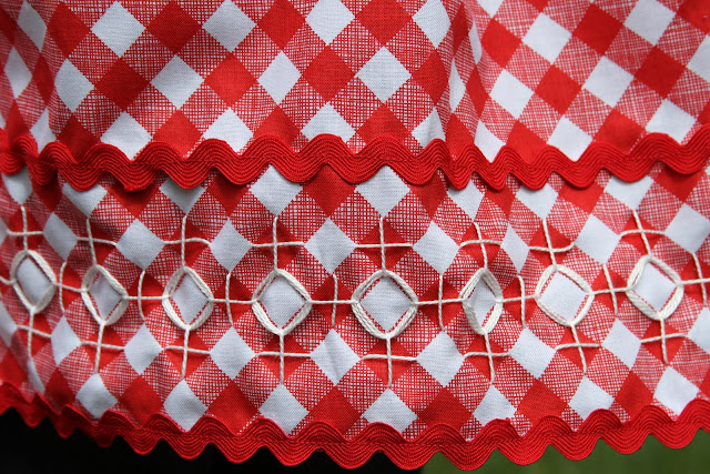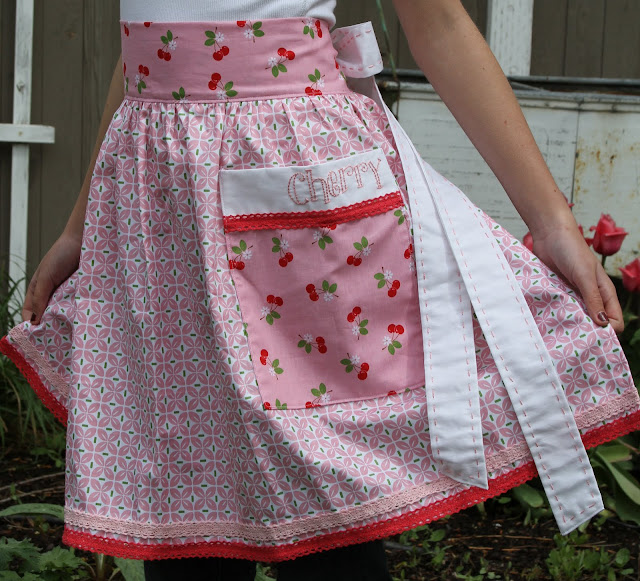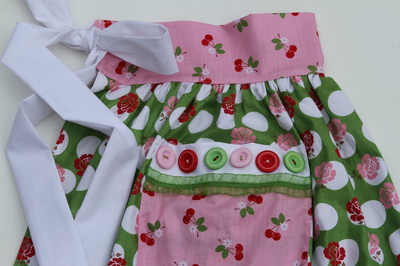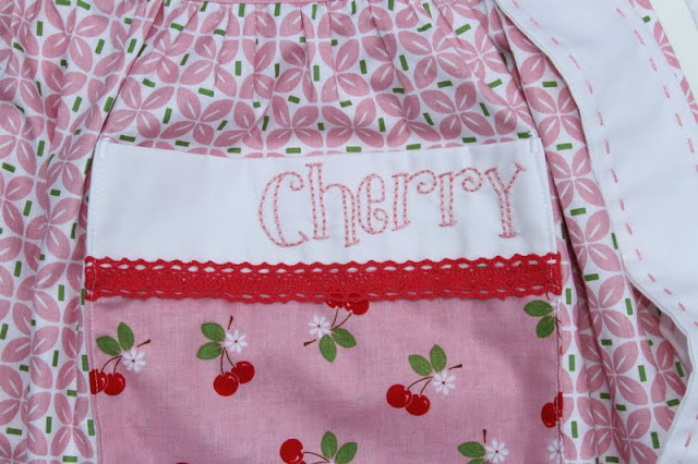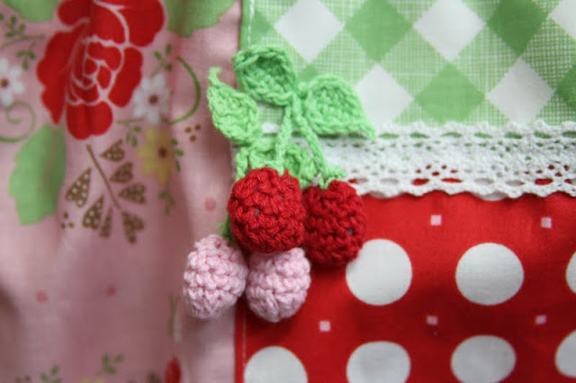 Of course I had to use the red and pink crochet cherries on one of the aprons...