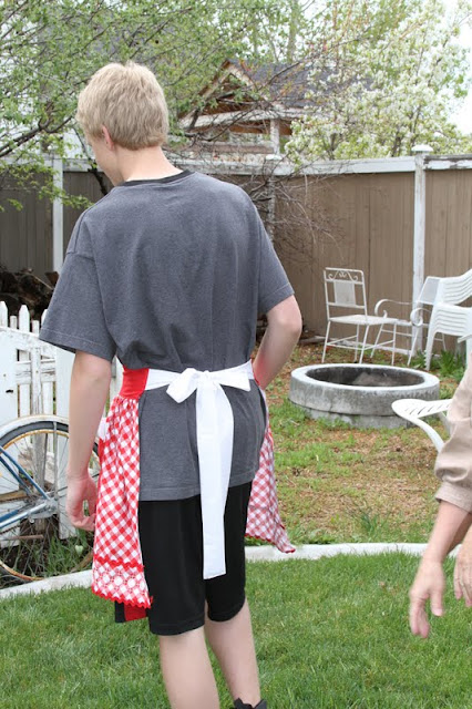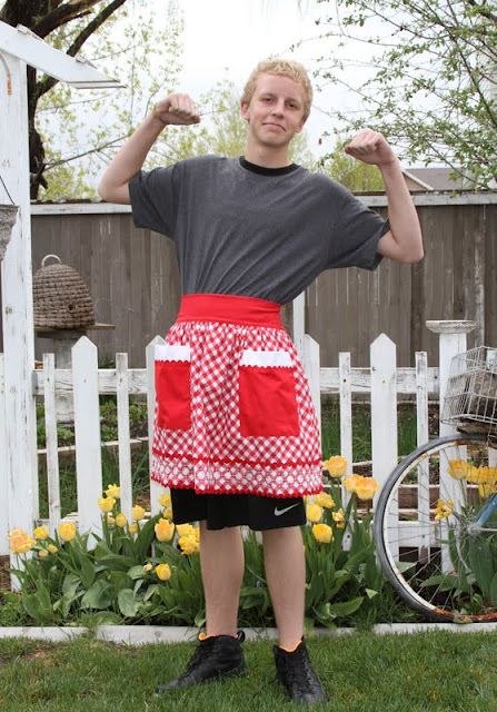 What creative aprons!! Tell your kids thanks for the great modeling, especially your son :-)