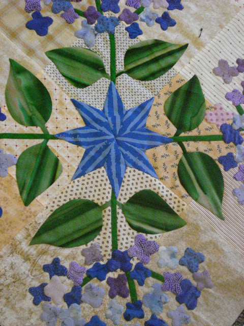 Gorgeous place, and fabulous fun. For anyone wanting to know the pattern of the amazing floral appique, after much searching I have found it is in a book called 'Stars in the garden' by Piece'o cake designs. Just love it.