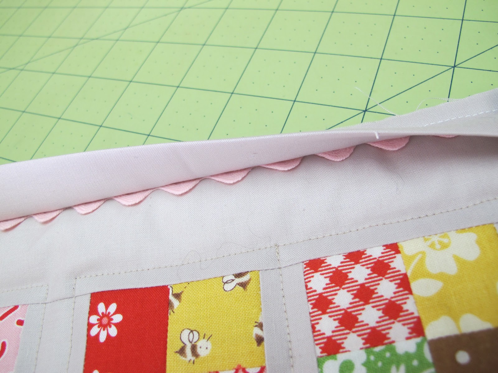 For the Dolly quilt...I sewed 1/2" pink ric-rac on the edge.