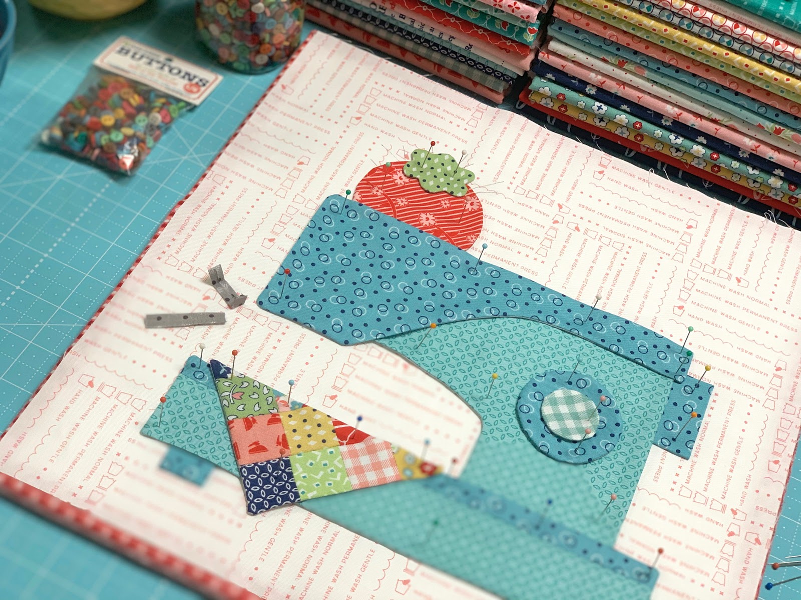 This is my favorite block of the entire quilt! Such a beautiful sewing machine Lori :) My family owned the brown Singer machine in your ads. I learned to sew on that one and so many memories came flooding back from when I was in my teens. My first quilt was made on that machine! Thanks for the walk down memory lane. I had also never seen Lucy sewing before...must have missed that episode! Thanks Lori
