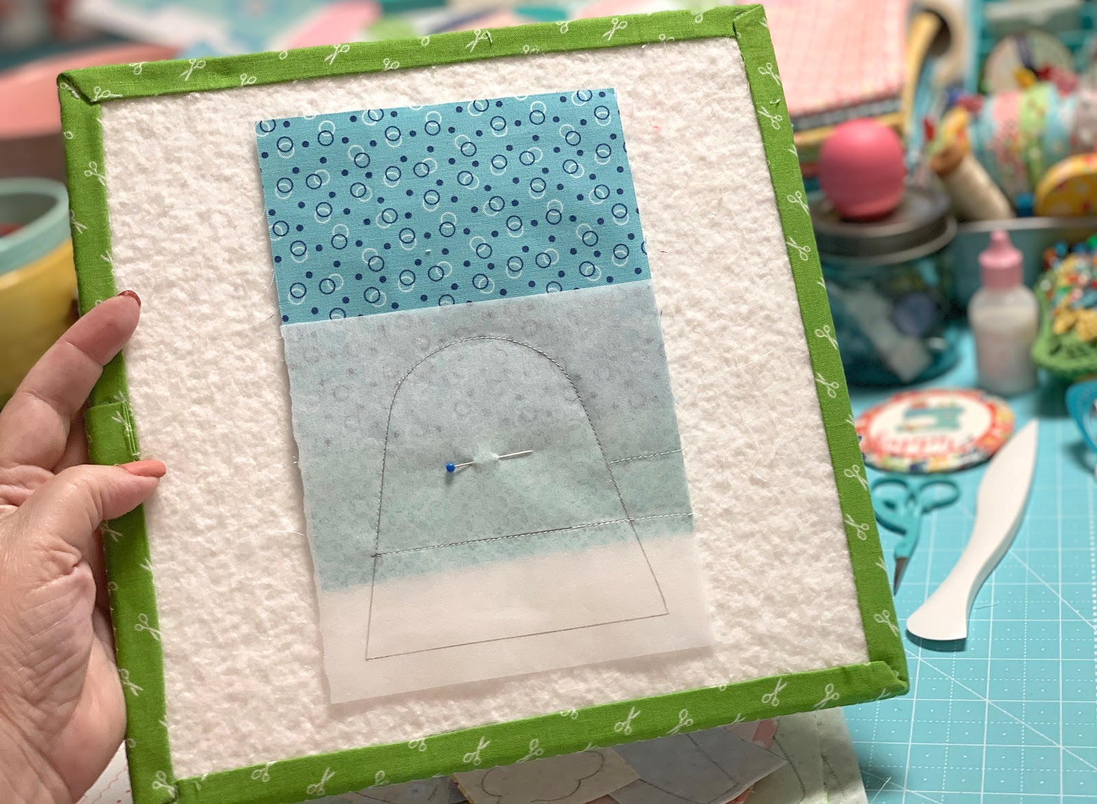 Pin basting is complete and