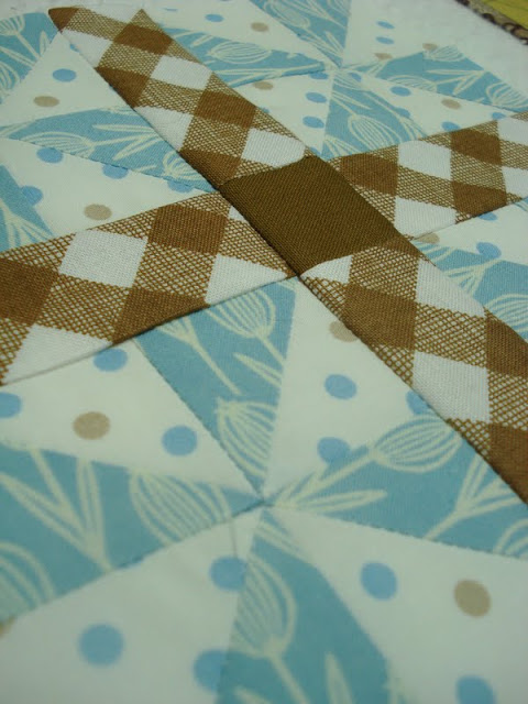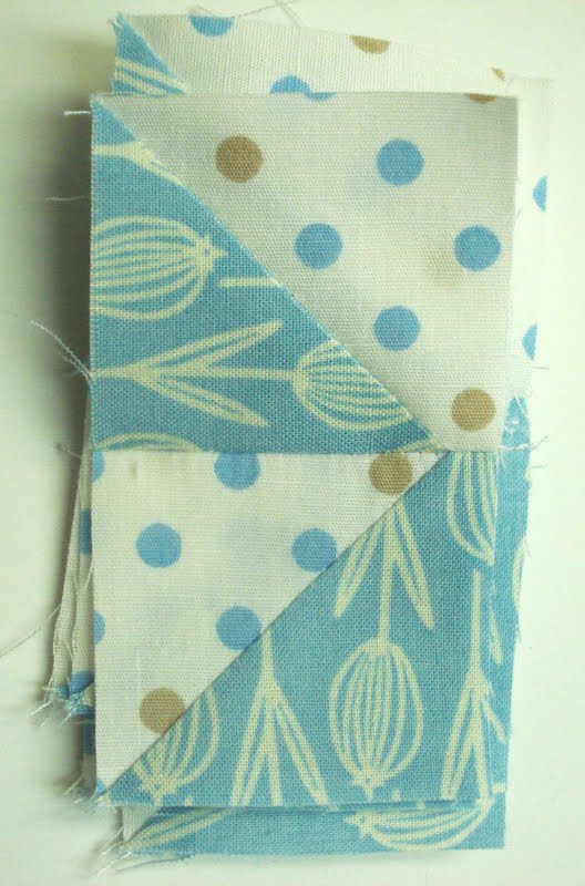 As you can see above, I also cut a solid brown square for the stem in the same size of the half square triangle squares....