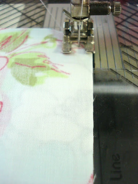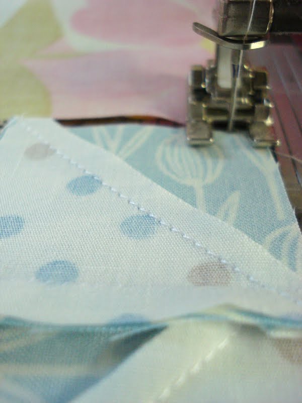 I lay one of the 1/4" smaller squares on top of the brown stem square with right sides together, making sure they are lined up squarely on both sides...