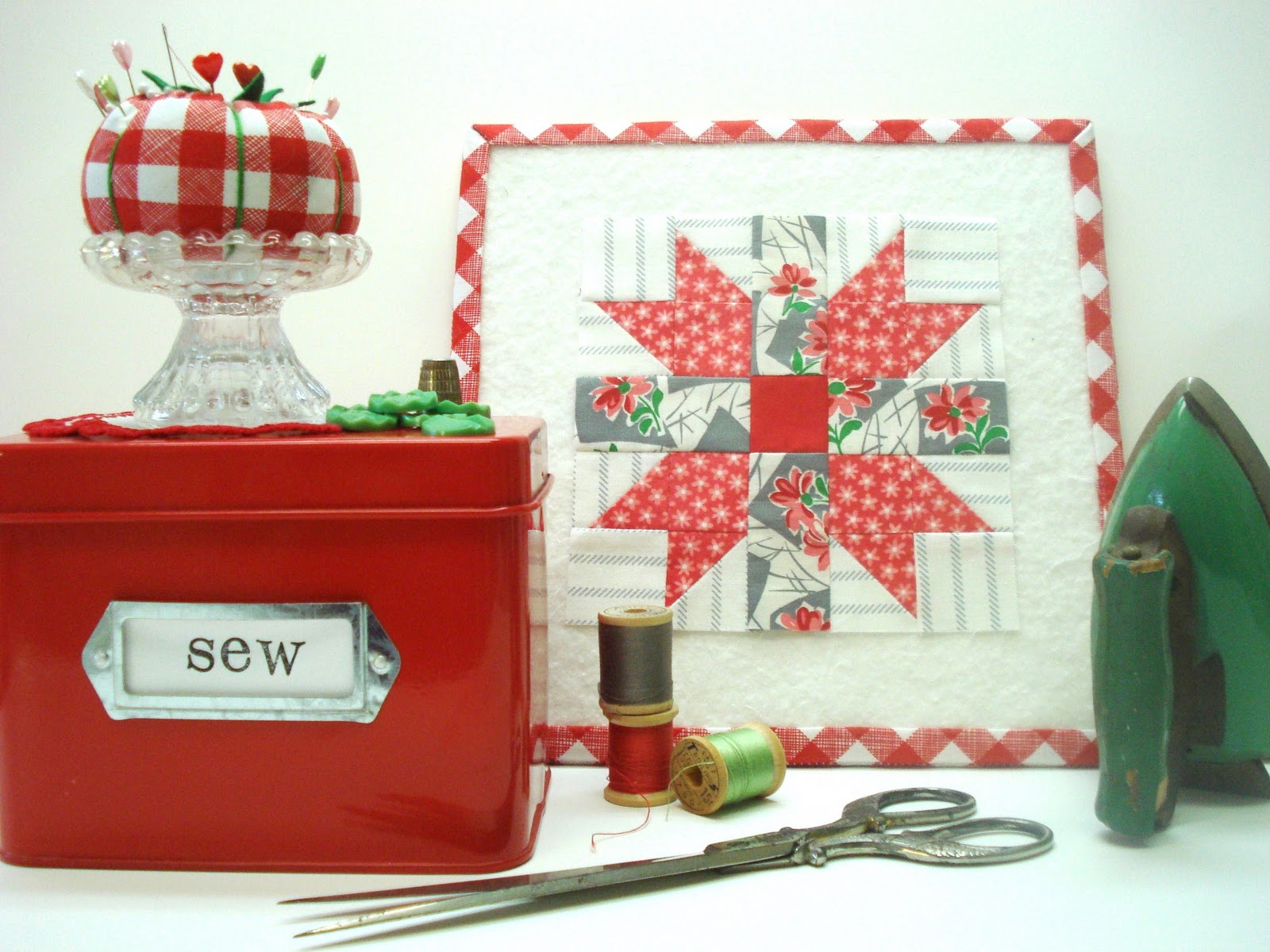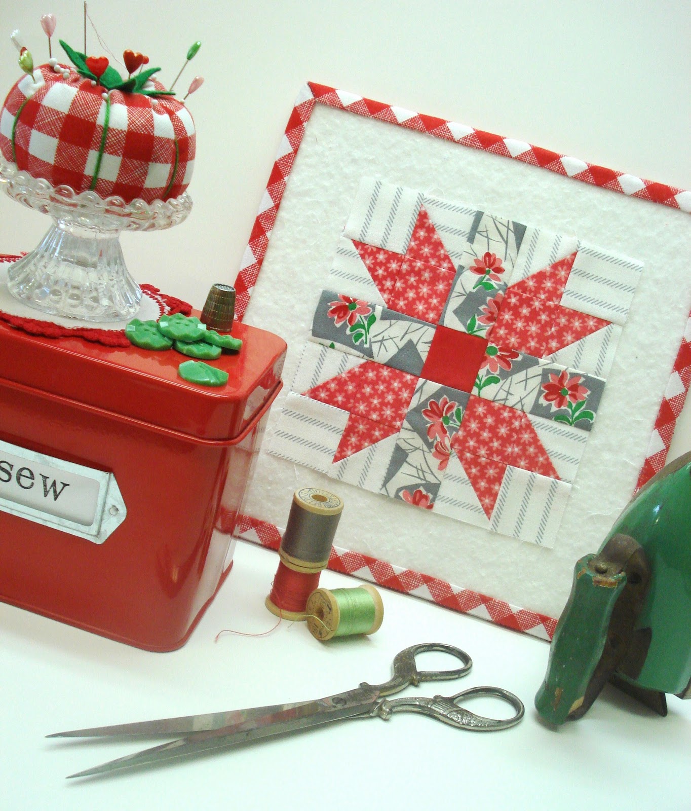 I decided to play with the color combo and set up a little vignette around my quilt block for a photograph.