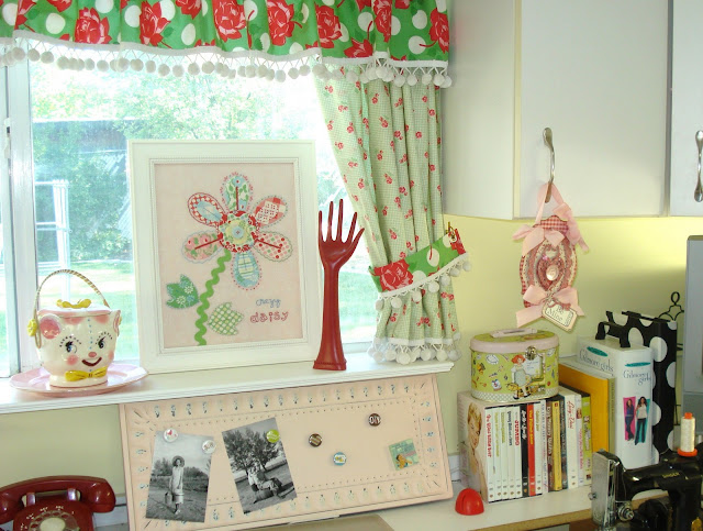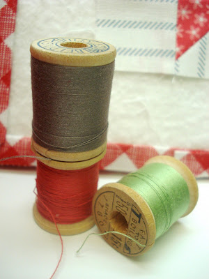 I usually take pictures in my studio so I grabbed a few sewing related things in there that are red, gray and green.