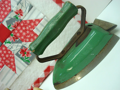 I collect vintage toy irons and this green one fit into my little vignette perfectly:)
